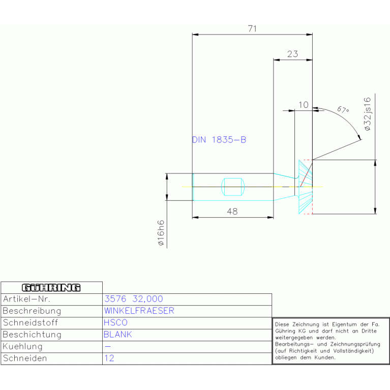HSCO WINKELFRAESER 32,00 DIN1833-D RH 45