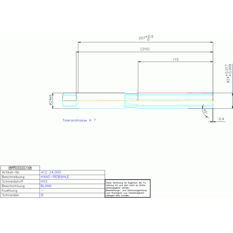 HSS HAND-REIBAHLE 24,000 DIN206-A RN ZYL