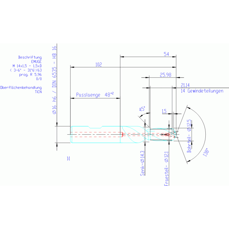 303-11 - Thread end mill with drilling part