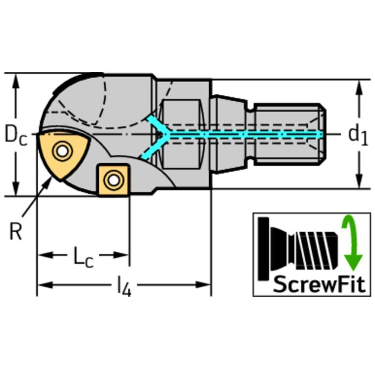 L - Face and side end mill with ball nose (more then one indexable insert pro cutting edge) 90°