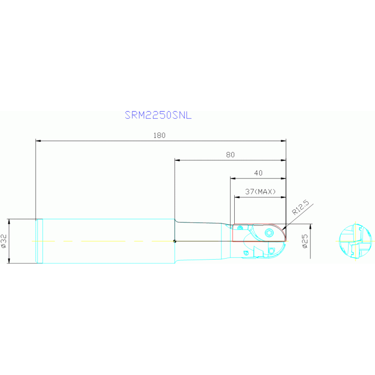 L - Face and side end mill with ball nose (more then one indexable insert pro cutting edge) 90°