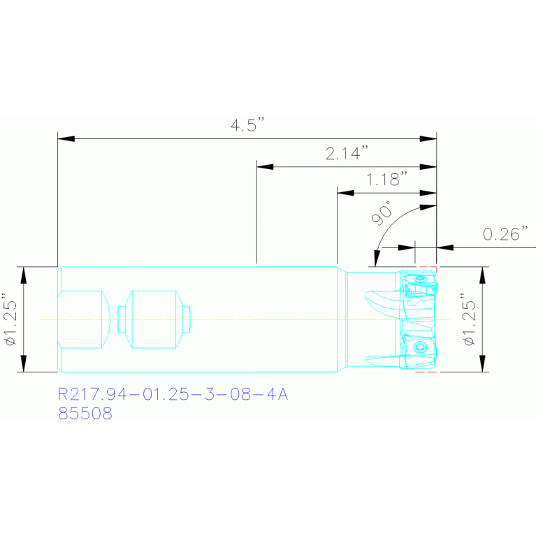 J - Face and side and mill (one more then one indexable insert pro cutting edeg) 90°