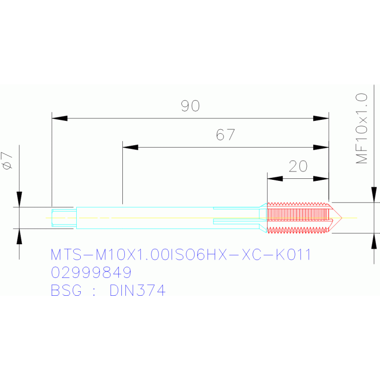 MTS-M10X1.00ISO6HX-XC-K011